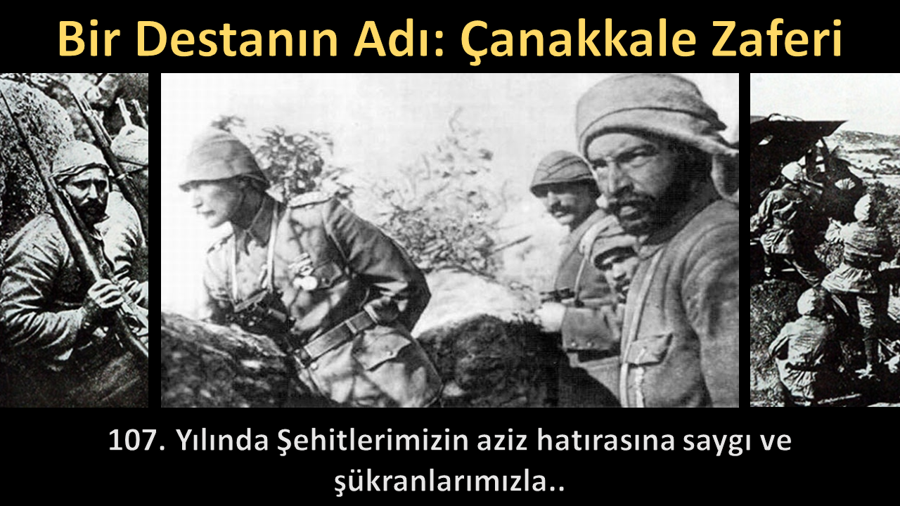 Türk'ün azim ve kararlılığını Dünya'ya ilan ettiği, Milletimizin 7 düvele meydan okuduğu Çanakkale Destanımızın 107. Yılında Gazi Mustafa Kemal ve Silah arkadaşları ile Tüm Şehitlerimizi en içten minnet ve şükran duygularımızla anıyoruz..